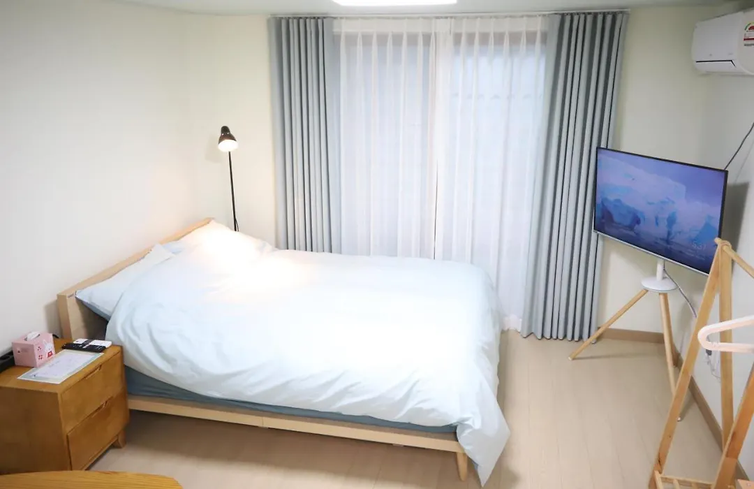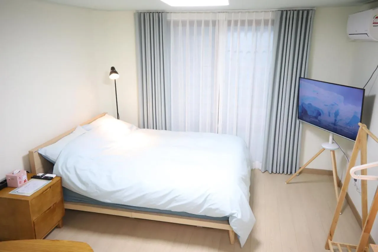 Suite heeft een keuken met een koelkast en keukengerei. Deze 1-slaapkameraccommodatie is te bereiken binnen 5 minuten loopafstand van Donggyodongsamgeori bushalte.